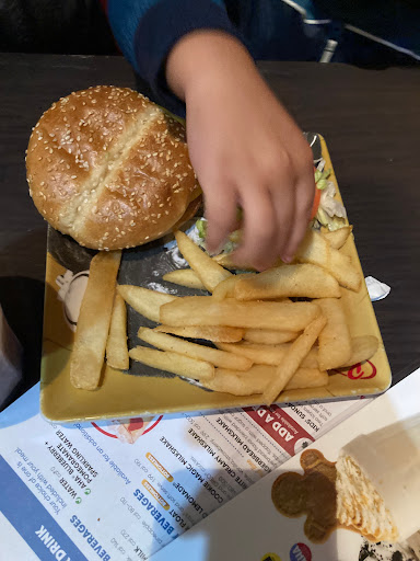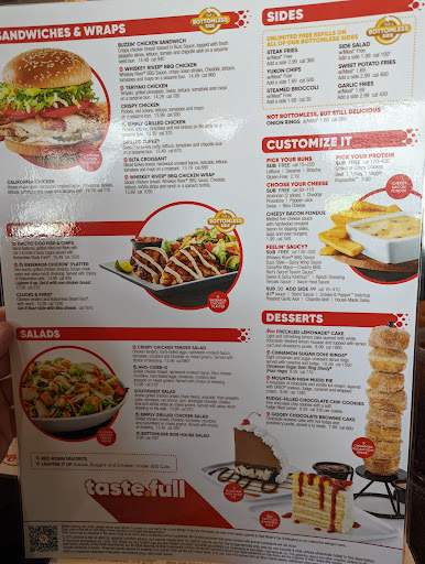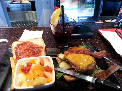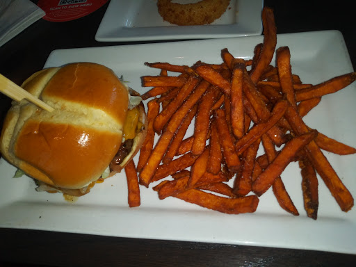 This place was gross. It was like a cross between Chuck E Cheese and Prime Bar, but Prime Bar has better hamburgers. Our waiter acted as though he was smarter than us, as he consistently tried to upsell desserts and drinks and made jokes that were only funny to him. He appeared genuinely slighted when we ordered water instead of 300 calorie sodas. At the end of our meal, he all but begged us to give him "all 5s" on the survey. I probably would not have filled out the survey had he not asked, but he asked for it. The menus looked greasy, and the TV on the floor looked like it belonged in a YMCA in downtown Detroit. The food was cheap quality and way over priced. We had a party of 3 (1 child), and got 2 hamburgers and a kids meal with 1 milkshake and spent over $40. Those hamburgers were not worth $10 a piece. And the bottomless fries were a wasted gimmick, as they were nearly tasteless. Its so easy to make fresh french fries - Im not sure why everyone doesnt do it: Take some potatoes, push them through a french fry press and throw them in hot oil. Literally, as easy as tearing open a bag of frozen fries and just as simple to store. Driving home, my stomach was gurgling horribly, and my 9 year old son was moaning in the back seat, his tummy hurt so bad. About the only good thing to come out of it was that our bodies immediately rejected the meals when we got home. The bad part was that it was a nutrition-less meal that was way overpriced. Next time well just go to Prime Bar. $5 Burger Tuesday! Lesson learned.