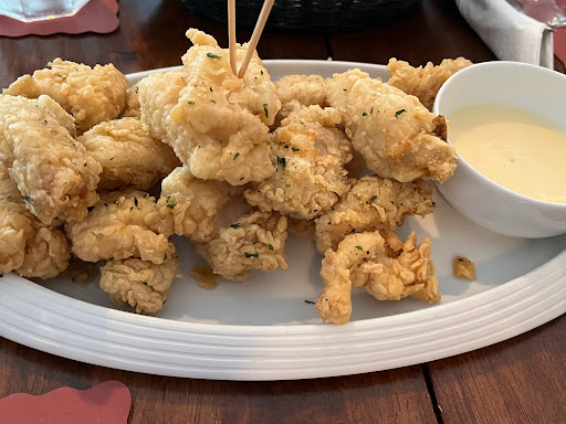 Nos encantó la sopa de mariscos y el filete de pescado, también el New York steak con los champinones, todo muy delicioso. Y la atención muy buena.