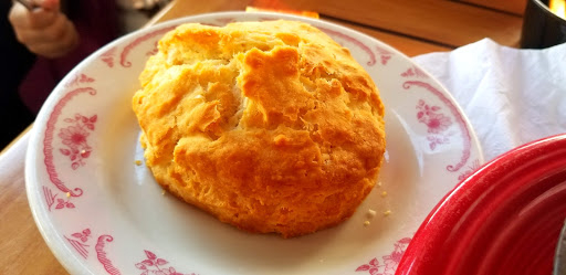 Very generous and delicious portions! We headed here for breakfast on a Saturday around 10:30, even though I read about the flies on Yelp. Lol. We had one fly pay us a visit before we got our food that wouldnt go away, but eventually it did. :) The Passion Fruit tea was really good unsweetened, but be sure to mix it well so you dont drink most of the syrup first like I did. :) I ordered the Chicken and Biscuits/Grits meal (which is plenty to split with a friend btw!) and my boyfriend had the Biscuits and Gravy. We tried splitting both dishes and it was still too much food. The biscuits were massive. Seriously. But oh so good. The sausage gravy had tiny bits of pepper in it, not spicy though. It was different and good. Overall it was nice service, took a while to get our food, and the food was good. We may come back since its close to the house.