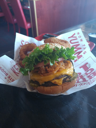 Gourmet burgers really? Hardly. The burgers are small 6oz. So small you cant even see it under the bun. The topping are OK. Chilli was weak. Heres a run down of our first visit. 1. Service OK2. Onion rings - great3. fries - soggy and tasteless4. Burgers -small and not much taste5. Manager - Lame. We asked him a question about our order and he answered us in passing as if we were a bother. Overall, if you like your burgers this is not the place. try Burger21, Burger Bar, The Tiki bar in Clermont, Red Wing, even Ale House is better.
