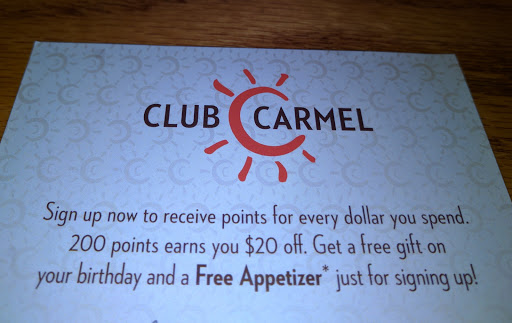 Carmel is really a very unique dining experience. Their wine list is fairly large and they offer small pour sizes to build your own flight. Our second time there, we arrived just before 7 to enjoy happy hour white wine at $4, along with an appetizer for a few dollars. Their menu has significantly improved since the last time, as I noticed a Tunisian Chicken with mashed cauliflower and string beans. It was very good. Id have it again. I enjoyed it much more than the chicken skewers I had the first time. Their menu is on an iPad, and you can order items at any time through it. I really loved that option, though the menus UX isnt the best. I do enjoy pictures of all the food...that always helps sell me. Will continue to come back here for sure.