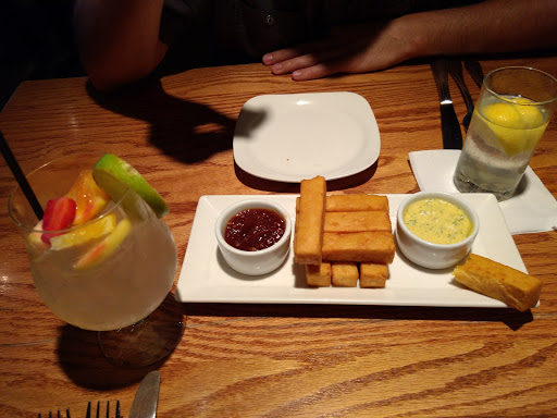 The restaurant was nicely decorated, staff was friendly and had a good feel when walking in. The down side was when our starters arrived.... another waiter was right behind with the main dishes. That was a mess up and we knew if you sent it back it would just sit. I ordered Rustic Chicken with yellow rice and a friend the same but with veggies. The dishes came out with just chicken on the plate. Another friend ordered the burger, with no lettuce or tomatoes... she got just a patty with cheese. We were never asked if we wanted coffee or dessert. The food itself tasted good and portions were decent. Unfortunately, the experience wasnt that great.
