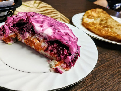 The food is amazing. We had the shuba salad and cabbage wrapped beef and rice. As well as the Siberian style dumplings.