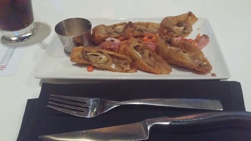 There are some places that you will visit time and time again to eat the same dish over and over -- for me, TR Fire Grill is one of those places. Two dishes that keep bringing me back for brunch are their Chicken & Waffles and Lemon Ricotta Pancakes. The Chicken & Waffles are always beautifully presented, with juicy, crispy breaded chicken, thick, savory waffles made with white Wisconsin cheddar and bacon dust and a touch of sweetness from agave syrup served with them. The Lemon Ricotta Pancakes are also the perfect balance of sweet and savory, served with mildly spicy jalapeño chicken sausage, a seasonal selection of fruit, and topped with maple syrup. Their locally sourced juices are a great option for a flavorful drink, whether standalone or in one of their alcoholic concoctions. While I personally usually stick to those two dishes, I did visit TR Fire Grill today with a group of friends and tried something new – the Flank Steak and Eggs, which I was slightly underwhelmed with. The steak was cooked to the medium rare I had asked for, but the dish didn’t list that it came with an egg, so I wasn’t asked for my cooking preference on that and was served an egg that was too raw for my liking. The green chili sauce complimented the steak nicely, and the potato hash while nothing special was a nice side. I was disappointed in the paprika biscuits that came with it, however, as they were a lot smaller than I thought that they would be and they weren’t evenly shaped or sized. Overall I felt that the Flank Steak and Eggs dish lacked the cohesiveness, complimentary flavors and the tight presentation that my other favorite dishes had. A friend of mine ordered the Red Velvet Pancakes, which were also rather sloppily presented, and her syrup was left off the plate. She also found the cream cheese frosting to be entirely too sweet, one reason why I have not ordered that dish (it just seems like sweet on top of sweet on top of sweet, which I guess is some people’s thing). While I will return to TR Fire Grill to re-try some of my favorite dishes, and I have a feeling that I will be back to try the lunch menu, I feel like my experience today put me off from venturing out to new parts of the menu... at least for a little while.
