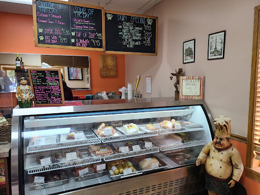 One employee cannot run The Villages location alone. For the prices Yalaha charges, I dont see why they cant hire at least 2 employees. One lady took our order, cooked our order, served us, got us pastries to go, and checked us out. The restaurant was full and people kept consistently coming in. It took a long time to have a simple lunch. We got our food, but no drinks. Thank God no one choked and died. Bread is a hard food to get down without a drink. Most were annoyed that this place was short staffed and 2 people walked out while we were there. There needs to be 2 employees at least on the weekends. I was also disappointed at the short lunch menu compared to what the original location offers. The pretzel bread had a strong baking soda taste and was really hard. It needs to be warmed and softened before serving. It was hard to chew and get down. Pastries were good. I think they need to move to a bigger location and make it like the original location in Yalaha, FL.