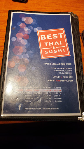 What a great find! Husband and I have been hoping a sushi restaurant would land close to Zephyrhills. Must admit I was very skeptical, We had eaten at this establishment when it was a Thai restaurant (was good but nothing special). NEVERTHELESS, the place has been completely renovated and has a whole new set of owners. The menu is really extensive, Lots of Thai options and a huge sushi menu. Our meal started with a complimentary creamy crab, avocado, cucumber salad. Delicious. Went on to order the Tuna Lover Roll, Sashimi Style Roll, and Lobster Bomb Roll. Danny, the sushi chef was very friendly, and his product is beautiful. One might not expect fancy presentation from this kind of place, I certainly didnt, but again was so pleasantly surprised. The portions are extremely generous, My lobster roll was huge with the biggest chunks of lobster Ive ever had, and on top of that there were 5 big lobster tempura pieces nestled in a lobster tail outside the roll. I had to take half of it home. We plan on visiting at least once a week. I hope they make it. Good news is that while we were there, there were at least 3 tables who were repeat customers.