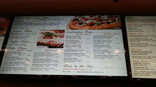 The pizza is really good here. Great selection of pizza and good variety of other items including subs, salads and calzones. I recommend the chicken bacon pizza.