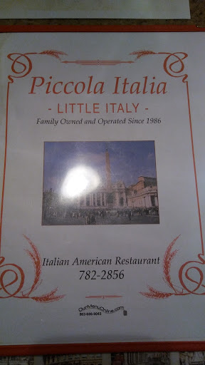Part of my Christmas gift from our son-in-law was to take us out to eat, It was close to dinner time and I called ahead to ask if they could accommodate a table of 8 in 15 to 20 minutes they said sure. From the moment we arrived it was a pleasure, to my surprise they had set-up a table in advance for us and we promptly seated, their menu was full of all kinds of wonderful dishes, from pizza to full meals, including seniors and kids meals. The cost for a family of 8 to eat including appetizers, soup, pizza and full meals complete with drinks was a grand total $140.00 with tip. Each meal was delicious as we shared among ourselves, I had the veal/eggplant parm with pasta, the veal was real, not a patty and the eggplant was fresh. I had so much food I left along with the others with doggy bag in tow. My son ordered a large calzone and I do mean large, when the waiter walked it over to the table just about all the other patrons heads turned in amazement as well as our own. I have never seen the likes of a calzone so big, being from N.Y. I am accustomed to Italian food and was shocked that when he cut it the calzone was packed full of cheeses and meat. The cost of the Lg. calzone was only $9.00 and it could have fed a family of four easily. I have nothing but praise for the owners and there staff. I highly recommend Piccola dont miss a great meal with a pleasant staff.