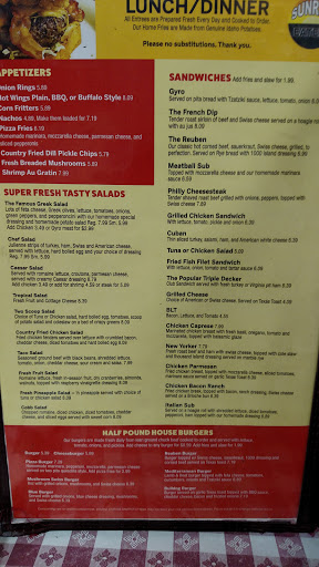This place does not need my help with a good review since it already has tons, but heres another great review for this diner. First time visitor with my family. First off, looks great on the inside. Like a big well-kept, well, diner! Staff was pretty friendly. My family ordered a ton of food and maybe spent $35 to feed the five of us. Ordered the chicken gyro, and it was splendid. Nice big portion for the price. Kids destroyed the mac n cheese, corn dogs, and the chicken noodle soup. Just when we thought we were done, the manager came over and apologized that our soup came out with the meal. Didnt even cross our mind, but nice of him to think of us. Then he comes back with this awesome piece of cheesecake for the family. When I say awesome, it was about the best cheesecake I ever had. I dont make it out to Zephyrhills too often, but Ill probably drive all the way out here just to go to this place again.