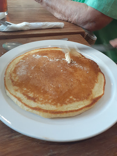 Breakfast was good, but blueberry pancakes tasted freezer burnt. Decaf coffee was expensive at $2.69 and weak. Service was great and bacon was excellent. May give it a try for lunch.