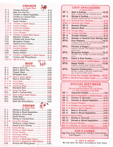 We went to China Heaven for the first time yesterday night. To my surprised the food was just like it name China HEAVEN. The food was abosulutly delicious I would totally recommend there Sesame Chicken and their Chicken Wings not only delicious but it was cheap and it was a HUGE portion. It tastes just like N.Y. I would recommend this place 100%. Theyre opened for 17 years already and I can tell its a pretty popular place. My food got delivered in 25 minutes which is not normal for a Chinese Restaurant I ordered previously at another Chinese Place and the delivery was more than an hour and the food wasnt even good. The girl who answered my phone was extremely nice and took my order in just like 3 minute. Food service was quick, delicious, and non expensive. I would definitely come back here again! I recommend this place to all of youll thats looking for a Ny style Chinese place, cheap and non expensive!