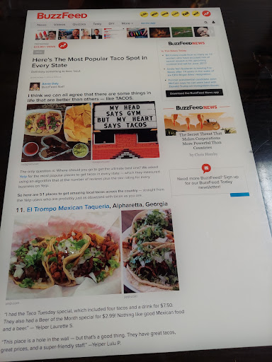 There is a reason every single one of the reviews for El Trompo is 5 stars. Pros: Amazing food, best Mexican ive ever had. Ive eaten Mexican food all over the country, and this trumps them all. Amazing service. The staff here are outstanding and really are a model of what customer service is. Its the equivalent of visiting your Latino friends house on Thanksgiving. Excellent atmosphere. They had football(soccer) playing on TV completely in Spanish, which is how I prefer to watch it. (No one can announce sports like a Hispanic man can.) Mexican beers, Mexican sodas, you name it. Everything about this place says to you "Stay a while, and get fat!" The men are polite and very welcoming. The women are beautiful and sweet. But the thing that stands out above everything, is the food. If you dont like the food here, its because you suck as a human being.