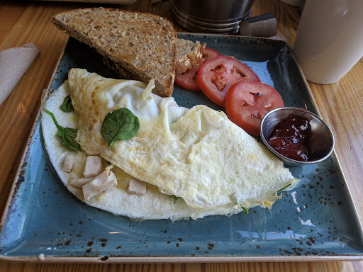 Missing items in food. Pancake no syrup. Eggs with market fresh veggies had burnt zucchini skin with no bread served . Waiter paid no attention. When I asked for bread i was asked oh you need bread ..I clarified does the egg not come with bread to which the answer was I am just the host not the waiter ...
