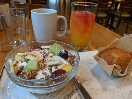 Staff is awesome! Food is good and fresh, but the only reason I dont give 5 stars is they are hit or miss on the eggs, especially the scrambled ones, not that theyre not good, but perhaps their griddle is too hot & cooks too quickly. Everything else is great, though I would prefer they have an espresso machine at the one in Alpharetta so I can get a cafe latte.