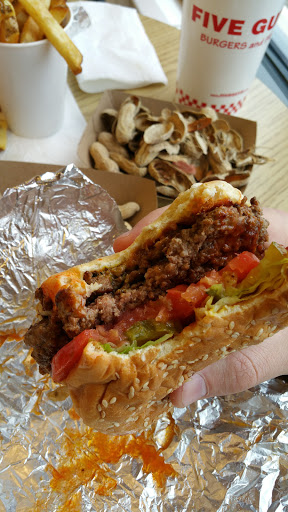 I can always count on five guys to make a rockin burger. The staff was super friendly too even though I was coming 15 minuets before they closed. It can be pricy but youll never leave this with an empty stomach.