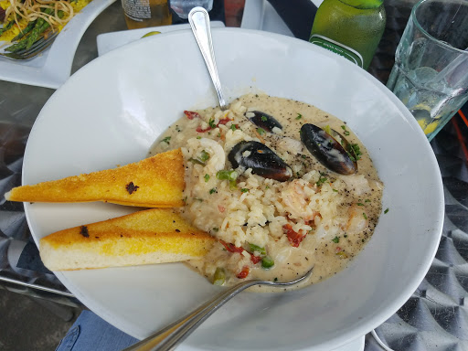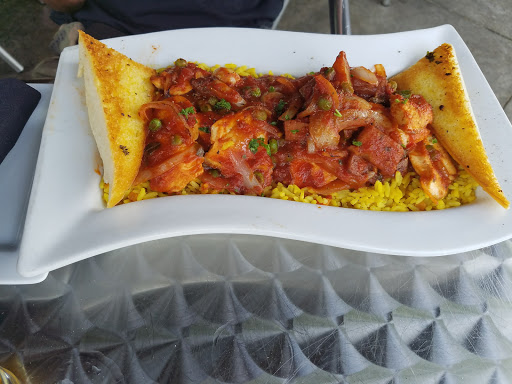 Spice was a nice place to have lunch. Its not terribly busy at 2PM, and the atmosphere is dark and really chill. It seems like a great place to go to at night. Their food lacks the spice you would expect it to have though. Everything was a little bland. The smoked salmon spread was alright...lacked the smoked flavor I expected but it was creamy. Blackened tilapias were definitely not spicy, but I was warned before I got them (Yes, I asked...my fault). I also ended up getting the Shrimp Flatbread to-go. It wasnt bad. The shrimp on it was pretty good; great size. The flatbread itself reminded me of the pizzas I used to get at school lunch though. You know the ones you put ranch dressing on. On a positive note though, I went on a Tuesday. They were doing half off the flatbreads, so it was a relatively cheap choice. Honestly wish I wouldve ate one there instead of the tacos because some of these pics on Yelp look AWESOME. The place isnt bad though. The service was fine. The drink tasted great and was stronger than I had planned for, hence ordering a flatbread to-go.