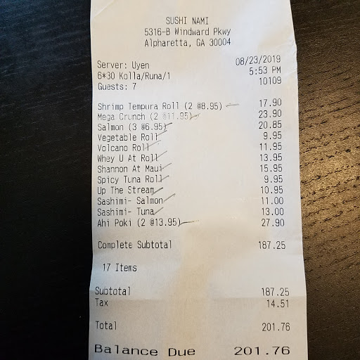 Went to Sushi Nami yesterday. It was hard to talk to each other because of the noisy surroundings. Placed our order and when it it arrived it was the wrong order so had to send it back. Finally got our order and the fish was warm, like it had been sitting out of the refridgerator for awhile. It also had a strong fish smell which means it was not very fresh. For the price, quility of the service and food, I will NOT EVER go back to Sushi Nami. For all the good reviews it has I was expecting better. My mistake.