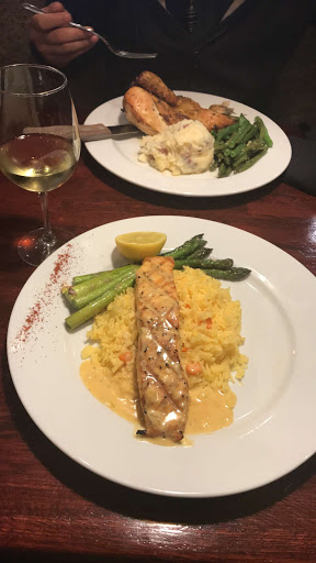 We chose this location as a work lunch to say goodbye before our team went on holiday break. We arrived around 12:30PM, during lunch hour but we had made a reservation. We were seated right away. That was where the good ended. First, it took over 10 minutes to get anyone to come over and acknowledge we were there. When one of us finally flagged down a server, we were told they would be right with us. One of the members of our party requested water to which the server replied, "Ill get it, it is right there" and pointed to a tray. We waited another 5 minutes before another member of our party decided to get our drinks for himself. He grabbed 2 glasses which was apparently the equivalent of slapping the servers mother in the face, and the server magically appeared out of nowhere to lecture and let us know that he will do it. The anger and annoyance on this guys face was downright frightening. He came over shortly later and began handing out the water, keep in mind we have had no positive interaction with our server in the 20+ minutes since sitting down. Another person on our team made the mistake of asking for a glass of water without ice. The server assured her he would get it and disappeared for another 10 minutes. When he reappeared he finally decided to take our order, not our drink order mind you, just our order. Also keep in mind we all had empty glasses at this point. I think 3 people may have gotten a refill, you can add a 4th from the water with ice that wasnt used from the person who asked for water with no ice. Even the manner in which he took our orders was hostile. His face was strained with impatience and annoyance at our very existence. He came to one person in our party who had diet restrictions and dared to ask a question about the menu. The server stood and stared at us dumbfounded and said nothing, so a person in our party, trying to be helpful, said "he cant have meat" to which the server replied with the utmost contempt and hostility, "I KNOW WHAT HE WANTS I AM TRYING TO THINK WHAT WE HAVE" The conversation at the table ceased and we all stared at this guy. I have never, in my entire life, ever dealt with a server as hostile as this. If I encountered someone on the street who treated me in the same way, I would seriously consider calling the police for fear of physical harm. I became afraid to look up from the table for fear of making eye contact. So clearly we have a failure in the area of friendliness of staff ;-) Understanding that we arrived during the lunch hour rush, we were understanding of how long it took for the food to arrive. However, not once was anyone asked if they wanted tea, a soda, wine, nothing. And at no point did anyone get a refill of the water we initially received. We were there for so long that the place began to clear out. However, this did not increase the amount of time it took to get a reaction from anyone in the restaurant. We were mostly ignored. When the bills finally arrive, 20% gratuity already added in..... we gave the server our payment right away. We were ready to go. Experience had been terrible, food was just ok, and we were all very very thirsty. We then had to wait ANOTHER 20 minutes for this guy to process our payment. We were a party of 12, I get it. It takes time but COME ON! Seriously. This is what you do for a living. Certainly you can process payment, right? On the way out of the door, we stopped to tell the front about our experience. Rather than apologize or inquire further about our experience, she blamed us for not saying something sooner.... so... ok. Well, needless to say, we wont be going back and I cant recommend anyone go there for a work lunch anytime soon. You may get the hostile server who doesnt refill drinks.