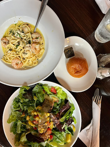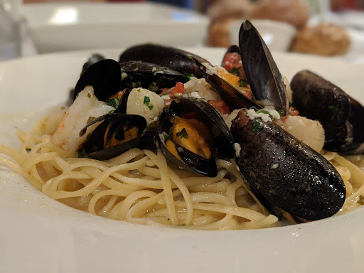 Mediocrity at its best on a beautiful Friday night! Drink selection: I asked about other Italian red wines, besides the single one they have on the menu. I was corrected by the server: "We are European, not Italian" Wait, what? As far as I remember, Tuscany is a region in Italy and it says Tuscany above the door....possible name change in the future? Also, majority of your wines are from California and Australia. So, come again?! The food selection: I started ordering the Mussels as appetizer and then Bucatini Pasta. "We are out of Mussels, but we have Mussels in the Seafood Pasta" Hmmm, no mussels - Caesar salad instead. Gotten some nice warm bread, one white roll and one dark roll. After a few minutes, we asked about another 2 white rolls. "Those are sourdough", I was corrected again. I apologize, I must not have seen the label on the rolls, neither the Sysco box where you probably got em from. Food - was alright, easily forgettable flavors and presentation. But, 4 shrimp on a knotted bamboo pick (most expensive skewers out there) and I get a aluminum spoon with my pasta which reminds me of a college cafeteria and doesnt even match the rest of the silverware. Well, Im glad there are better restaurants out there.