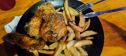 I came in as a part of a large group, which I know can be a struggle for the staff, but my order was lost which I dont feel is excuseable. While everyone else was eating the waitress came by apologizing for my lost order and asked if she could bring anything to make up for it, "perhaps a basket of fries." I said that would be great, and they were, but I was quite surprised to see these fries on my bill. When they did finally bring me my meal, they brought me traditional wings, rather than the boneless wings I ordered. I wasnt able to finish even half my meal before they had brought out the checks and it was time to go. I gave it two rather than one