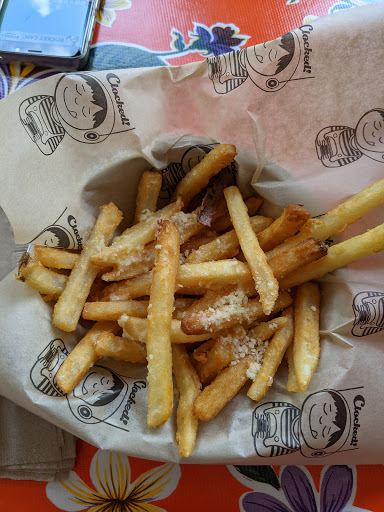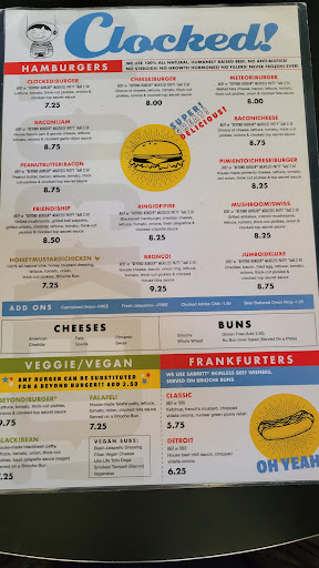 Clocked came highly recommended. Unfortunately, had a poor experience there. First, they called us to table and sat us down at one that was still dirty, though ostensibly cleaned. 10 min to drink orders. Waitress was civil but not at all friendly. Soft drinks no good, had to take them back. Machine problem for sure but part of the experience. 30 min for food to arrive after ordering (just burgers and fries). I spent the 30 min sipping on my replaced drink, which was out when food came. Never got a refill to go with my jalapeno burger. In fact, no got a refill offer although all drinks were empty or near. Burgers were all well done altho no one ordered them well done. Garlic parmesan fries just had some cold parmeson cheese sprinkled on top. Sorry but pass on this place.