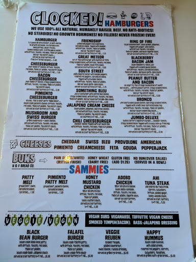 Ive eaten at Clocked many times, but yesterday (10/10/15) was my last visit. I was excited about bringing a group of friends to try the restaurant, but our waitor was extremely disrespectful. This was the first time I have ever felt guilty for ordering food. The group of off the clock employees chain smoking cigarettes at the table behind us was only icing on this cake of dismay. However, if these possibilities do not dissuade you, their burgers are quite good.