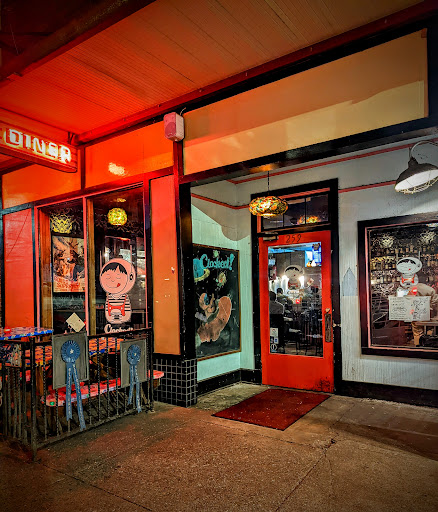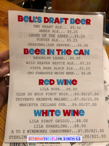 One of my favorite joints in town, and thats a tough call considering all the absolutely amazing places to eat in Athens. The veggie-burger here cant be beat and, though I havent had them, I hear the ACTUAL burgers are pretty dang good, too. I implore you to check out their eclectic menu online that tops your burger with everything from pickled cabbage to peanut butter. Their sweet potato fries are amazing with raspberry jalapeno ketchup and the cole-slaw is the really tasty vinegar base I am still trying to imitate at home. The decor is this weird, kooky, sort of 1950s B-movie shtick I love and theres usually a japanese super-sentai style show above the bar. Theres Bells on draft and great staff to help out and the after dinner mint is one of those unchewable double bubble bubble gums which I find incredibly charming. They have a real connection to the community and even do little contests every once in a while. Make sure to check them out if youre in the mood for a burger or hot dog thats out of this world.