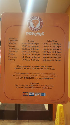 Ive gone to this location twice and both times the customer service was 110%. The last time I went I was on lunch break and was there for 20 mins tops. The staff were extremely attentive making sure if any customer needed refills or if the food was correct. In fact after about 5 mins theyd come back out just to ensure once again things were up to par; cleaning tables, taking trays. I have to be honest most popeyes arent like tht so hopefully they stay with this, very impressed. This location has only been open for a month so everything is new and clean or was last two times.