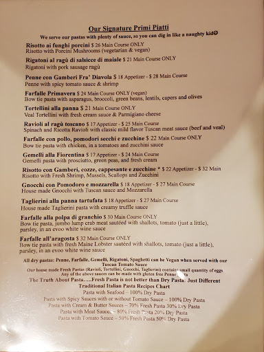This is actually a Tuscan restaurant, not an attempt at one dumb down for Americans. Northern Italian is the fare of the day. The brother of the owner still runs the family restaurant outside of Florence Italy. Amazing Italian wine list and the best by the glass wine menu in the city. Service is attentive and the kitchen is skilled. I like to do this place with 6 or more friends and just phone ahead and ask the Marco to make us something great. Drop in around Sept-Oct for white truffles added to the menu - to die for. I would not pay too much attention to the complainers who have 1 starred this gem. Marco is a great guy and his staff are professionals. If you were offended, no doubt you deserved it - off to the Olive Garden for you!