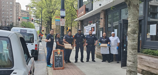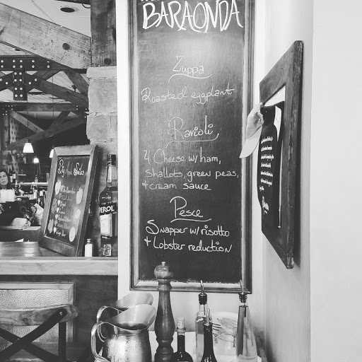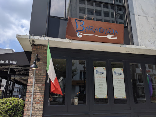 My wife and I are in town to see Wicked @ the Fox Theatre and since we are staying at Hotel Indigo, we decided to hit up the Baraonda for lunch since it is half a block up. Arriving at about 11:45, there was plenty of seating and service was very prompt. Although the place filling up as we finished our meals, we had more than enough room to enjoy ourselves both at the start and the end of the meal. We both selected a Sweetwater 420 (Brewed here in the ATL) for our beverage and a order of the fried calamari for a starter. The calamari was very good; served hot with herbs sprinkled over top and a cup of warm marinara sauce on the side. The portion ration was very generous and despite being quite hungry, we barely cleared half of the calamari that was served. Our beverages arrived in about 2 minutes after ordering and our appetiser took no more than 6-8mins to arrive. For our main course, we opted to split the Romana pizza - definitely not a mistake. These light, flour pizzas appear to be stone over baked and are very tasty. The pizza was large enough for both of us to stuff ourselves on; especially in light of the mound of calamari consumed only minutes earlier. The melding of pancetta, sundried tomatoes, onions and mozzarella on top of the light flower crust was, well, just perfect - definitely recommended. By the time our pizza arrived, we were about 1/2 into both our brews and starter - I would say about 12-15 mins after ordering (when our app was brought), though I must admit that the atmosphere combined with the spirits detracted my attention away from the clock, so this is an approximation. All in all, I rate our experience at the Baraonda Cafe to be excellent. In all, before tip, our ticket was about $30 (2 beers, calamari and pizza) - not a bad deal for a nice lunch in downtown Atlanta IMHO. If I ever find myself staying back in this area, the Baraonda will definitely be on the list.