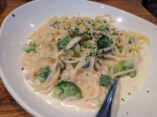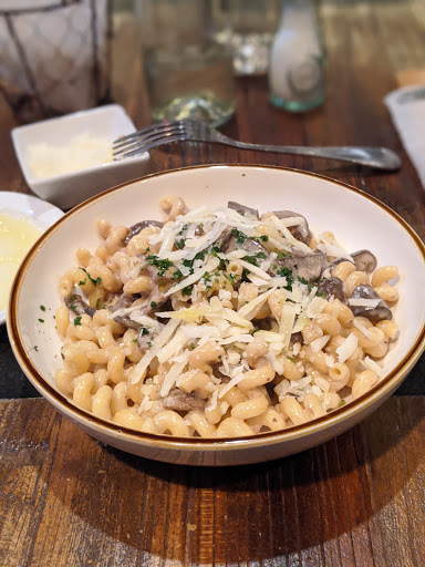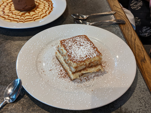 I dined here last night with my son and his friend. We received a friendly greeting and were seated immediately. The atmosphere was nice and cozy. Once at the table, the waitress handed us the menu and said: I be right back. Never knew her name as she did not care to mention. Then another girl came and put 3 glasses of water on table. No hello, nothing. This one also served bread cheese and oil to other tables but not to us. Our nameless waitress surfaced again. She took our drink and entree order. 10 minutes after that, I waived her down and asked if we are allowed to have some bread too? Of course, we received cold bread and olive oil... Now, if you have been to Bonefish Grill before, you now know whats wrong here. By the way, in Italy they wouldnt dare serving you like this. Then our entrees arrived. They looked good and tasted very good. We had Pizza and Lasagna which we enjoyed. Last but not least we always like to try a dessert, the Tiramisu was delicious. Overall, they need to work on customer service skills. And you if you serve your guests bread, make sure its fresh baked and add some herbs to the olive oil. Would I come here again? Not sure.