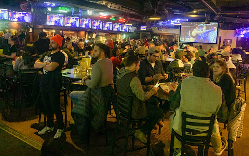 The food is good and its huge inside. There are pool tables and other games. This place is 10x better now that you cant smoke inside anymore. They also always show the ufc fights and sometimes there is a cover for it. TVs and projectors are everywhere so dont worry about getting a bad seat.