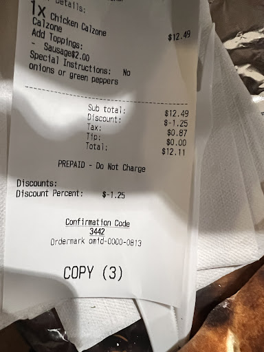 I ordered one of their specials, 1 large 2 topping pizza, 10 wings, 2 cans of soda. On the pizza I asked for not a lot of cheese. (light cheese) I asked for ranch for the wings and coke as the drink. Cheese was normal, they forgot the coke and the ranch. Sucked as much as you could because it was 1am Saturday night so at that point what is there to do other than complain about it. The delivery guy actually told me I could buy coke from a machine. They deserve less than 1 star.