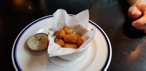 We were very confused by this place - valet parking for a normal sized parking lot...strange. Walked into a casual diner until we saw the host who was decked out in a suit, waiters were wearing fancy uniforms (but they were dirty, wrinkled and disheveled), and the tables were covered with nice linens. Then the smell hit - it smelled like a nursing home. I had lipstick on my glass. They forgot the kids menus. Food was mediocre at best. I got three silver dollar sized fried green tomatoes that were hard as rocks for $10. The mac n cheese tots tasted like they came out of a grocers freezer and the sauce was like Caesar dressing with blue cheese (it was supposed to be a truffle dipping sauce). My husband received an American hot dog that was just okay plus a pile of lettuce as a salad (which they forgot dressing). My kids shared grilled shrimp and mac n cheese. My son LOVES shrimp and couldnt eat more than one. They were bland, burnt and chewy. The macaroni was just okay. In a nutshell - this place is WAY over hyped and we will not visit again for sure.