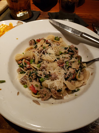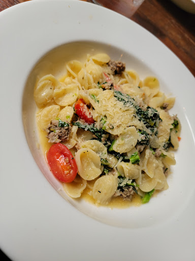 I really think they need to update their menu. Last night, I ordered their oreccheitte. Have to say, I was quite surprised how dry the dish was. On the menu it said to contain their homemade sausage, grape tomatoes, sauteed spinach and parmesan. With this, I had hoped that they had sauteed the tomatoes with the spinach. This wasnt the case. The dish was lukewarm with a few pieces of dried sauteed spinach, some parmesan, little cut up pieces of sausage and tomatoes which were not cooked at all. No other flavor. Therefore, there was no sauce. Some of the pasta was dried out. I did complain to the waiter. He was great and took the item off my bill. If I do decide to get pasta next time, I doubt if I will get it here. My friend ordered the lasagna which was great. All in all it was good dinner with excellent service.