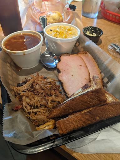 Great BBQ. Much better than Foxs BBQ....which sucks up most of the oxygen in the BBQ review category. How is it better....the sides are much better imagined, on old standards like Mac n cheese, collards, Cole slaw and provide great innovation on sides like braised kale, which was phenomenal. The meat combo was awesome and had ample portions of the St. Louis ribs and pulled pork. The ribs were fall off the bone moist with the slightest bit of char, and the pulled pork was pink from being smoked and moist as well. I got a corn muffin.that was sweet and Savory that wetted my appetite for dinner. Only bad thing is they need to carry either sweet n low or stevia as artificial sweeteners rather than equal which is a neurotoxin and shouldnt be carried by any restaurant.