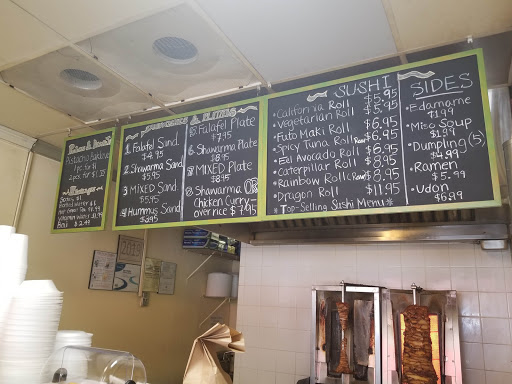 A place that sells Middle Eastern and Japanese?? weird I know. Havent tried the sushi yet....but everything else is excellent. One of the best value restaurants... perfect for students who have a palate for more than the "dollar menu"