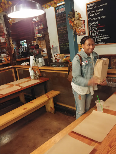 Not enough good adjectives to describe how I love this place! Everything this place stands for, localize ingredients, sustainability, local jobs, ect. I love the employess, they are helpful, fun, and happy. They music always has me in a good mood. I always ALWAYS get their specials! Why?! Because they never steer me wrong! If you are looking for a plain burger with the basics, this place isnt really for you. If you are an adventurous eater and like to try new things especially on a burger, then this place is for you! I love to sit at the bar, there I can watch people looked puzzled by the menu. A lot of the ingredients are different, it tends to turn them off, but I love when I can get some people to try something outside of their box, they always love it! Sweet Potato Hush Puppies are a must try! And their beers and liquored milkshakes wont leave you disappointed either! I just love this place!