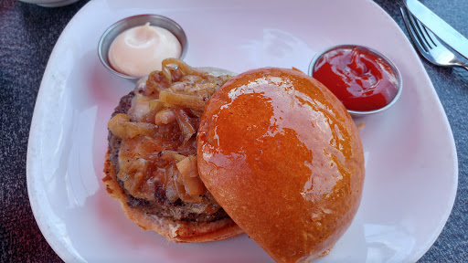 I read fellow reviewers comments about Flip Burger are overall the reviews are excellent, with just a few hit or miss comments. I was concerned that we could get stale buns or a bad experience, but you dont know until you go. With that said...today was the day to try it. The location On Howell Mill is industrial and if I hadnt looked at the pictures before going, I would have missed it. It does seem out of place here...but thats just an observation. It was a busy lunch crowd but the noise level wasnt bad at all. The place is very European in style, like visiting an IKEAs cafeteria. Clean? Yes. Very. A little overkill in the sterile department, yes, but I prefer that to nasty - Ha! Its obvious the owner loves a clean shop and this is restaurant was definitively clean. I loved the cement floors too. Nice touch. The bar...very long wood, covered in urethane and very clean. The reason for going, the food, so let me get to it. We started off with their potato chips with root beer onion dip on a reviewers recommendation. I was a little concerned as onions dont like me. I can state, the reviewer was correct and the onions were not an issue. This dip is actually on the sweet side and puréed; outstanding, just outstanding. I could have devoured the entire bowl on my own. I went for the RBQ and my date, the double stack. I ordered my RBQ medium-rare and it was cooked correctly. The shredded brisket, slaw, and smoked mayo all flowed so well together it was hard to put the burger down and come up for air! The buns? Lightly grilled and fresh! The double stack was the same. They were both very tender and juicy, so-much-so, that the juices were running down our hands. We also had to try the fries and were not disappointed at all. They were delicious. They were served with a side of ketchup and again, smoked mayo. The flavor of the smoked mayo made the fries sing for me. Side note. They have ice cold PBR 16oz cans, and when poured into a frozen glass...man thats good on a hot summer day in the ATL. Our service was very good too. Alejandro waited on us. She was sweet but more important, attentive. They dont give military discounts but the prices arent bad for the quality of the food youre receiving. If we werent so full, we would have tried a shake. Next time...The Turtle.