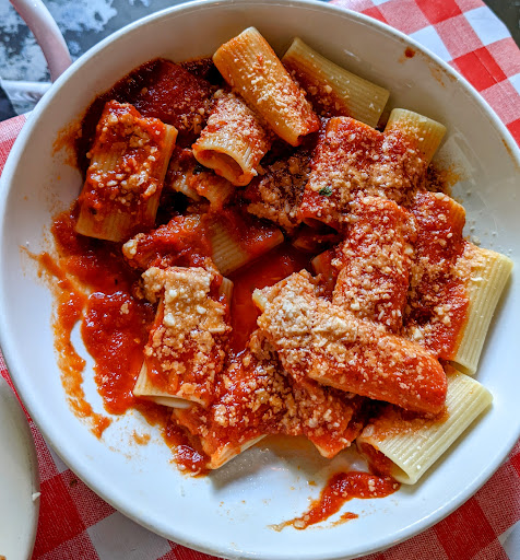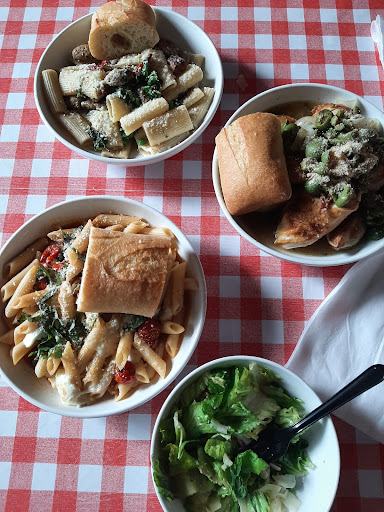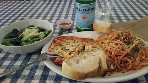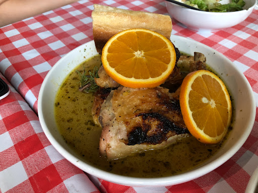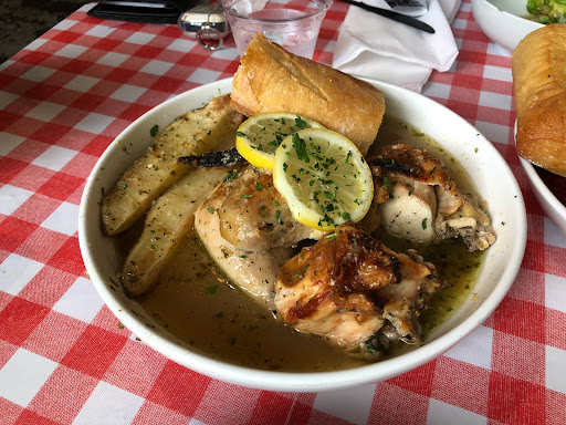 Stopped by for my first time on a Wednesday lunch to a normal-filled restaurant. Not much of a line but it did take a bit before our food came out. The menu made me feel uncultured and reminded me how little I know about Italian cuisine as I would read the menu description and only recognize half of it. Thanks to Yelps pictures I was able to see the dishes, so that pretty much dictated what I was going to order. The three of us split the DIAVOLA, MARGHERITA and the ARRABBIATA. I started off with a side salad that was WAY too saucy and salty. It was a good flavor but it was generously dressed which cause it too be so oily that it was too much. My main choice was for the Marghetrita because I was was craving something a little more tastier than roasted chicken. This was a nice big piece of flatten fried chicken topped with some fresh cherry tomatoes, basil and melty buffalo mozzarella. Generous amount of tomatoes to help cut the heaviness of the fried chicken. I wish there was more basil and cheese for a balanced dish. The chicken was just a tad too oily, otherwise the juiciness and tenderness were good. This was served with two wedges of roasted potatoes, nothing awesome or bad here. The potatoes were a bit heavy and random here since this was a fried piece of chicken, would have preferred pasta here. The bread was a little tough, even though it was toasted. The Diavola, this had great flavor as I typically lean toward spicier dishes. The chicken was mostly tender, a bit drier on the edges so not quite as even. The juices/fat/sauce that the chicken was swimming in was so tasty. I wanted to just drink this, I got close as I was soaking the bread in it. It had a kick from the chilis that sometimes went straight to your throat. The Arrabbiata was underwhelming. The pasta felt a little tougher than al dente, and the sauce was lacking. I had Future and Uzi Verts "Too Much Sauce" in my head to try to mentally compensate for this dish. It got to a point where i just dipped it in the Diavolas juices for more flavor. If they werent skimping here, I would have loved this dish because I love pasta. Great flavors and fresh ingredients. Many of the dishes werent executed as well as they could of, either too much sauce or too little. There arent many Italian chicken options so this place is rather unique. It a nice place for a date but also casual enough to stop by with some friends. They offer delicious foods at a reasonable price because the portions are filling, but there is always room for dessert, especially when its right across the street!