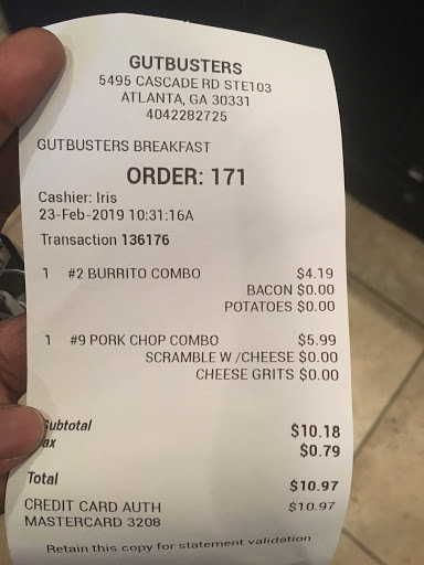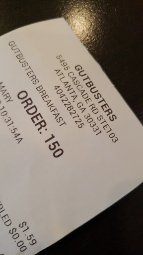 Gutbusters is great for breakfast...make sure you know what you want when you call it in. And have them repeat your order back to you. New menus are available. Lunch is very good too. The guys in the evening are very entertaining....