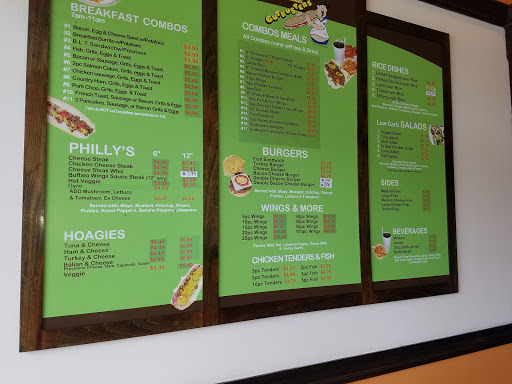 This place is great. There werent a lot of choices in this industrial area other than the traditional McDonalds so I was pleased to find this restaurant in the back corner of this strip mall. I loved the menu which had everything a corner restaurant in the city should have from phillys to wings to salads. I even had breakfast there this morning and found it to be large portions and good food. I am hooked on this little spot and each time I am in the area I will seek them out.