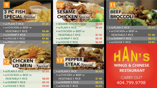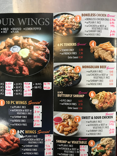 Staff is extremely rude and unprofessional. Wings are really small, and very few choices for chinese food. 2 stars for the braised wings which is probably the best thing on the menu.