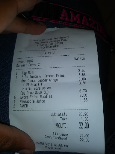 THE BEST CHINESE FOOD IN ATLANTA!!! I really cant eat food from most Chinese places because its so salty and it makes my lips burn. However, this restaurant is the best. If they use salt you cant tell it. If youre near bankhead stop by there. You wont be disappointed!!!