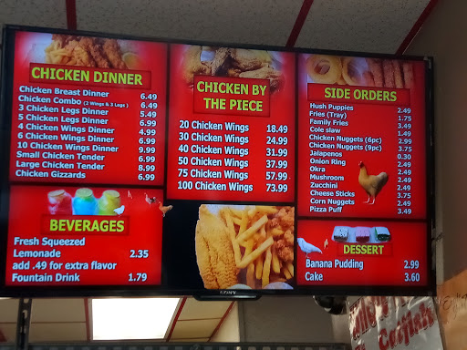 Cook to order best chicken Ive had from a different South are " A Southern Killer Seasoning" ask for extra if you like it sweet and spicy is the taste I get an crispy crunch,