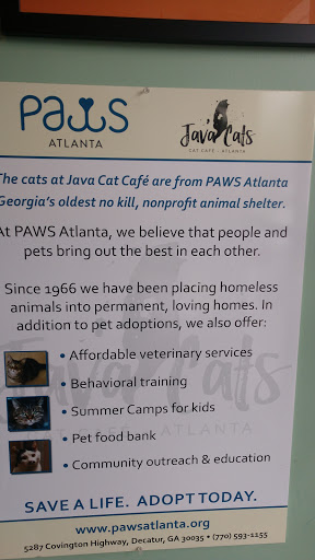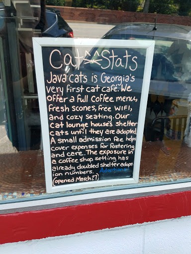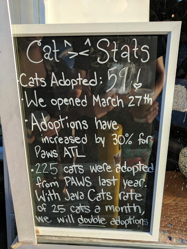 As a person who cant afford to have a cat right now, this place is a godsend. Java Cats Cafe partners with Paws Atlanta so all of the cats you see are adoptable. The cafe is open for walk ins all the time but if you want to see the kitties up close you have to book ahead of time, this is to make sure the cats dont get overwhelmed with so many people. They are shelter cats so some kitties are more skittish than others, so just keep in mind these arent your normal housecats. But there are plenty of friendly kitties in there that will come up to you and love you to pieces. As for the cafe, the tea is amazing! I need to come back earlier in the day to try their coffee, but I absolutely love their mint tea! They only have things like chips and cookies to eat, so dont come here super hungry. The smores cookie is the absolute best! Everything besides the chips are handmade goodness.
