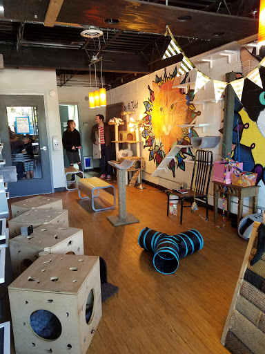 I wanted so badly to be in love with this place! The concept is wonderful... the execution, not so much. Supposedly, they let something like 6-8 people in the cat room at a time. Ok, makes sense. You pay $10 for a drink + one hour in cat room. Ok, sure, although now its getting iffy. Drink wait time is long for tea or anything they have to prepare, by long I mean 5+ minutes. Youre supposed to make a reservation to be in the cat room... That kinda sucks especially since you have no way to know this beforehand. And, they randomly let more than 8 people in the room if they feel like it. We got the last time slot of the day and 1.the cats were all tired (not sure if they let them have any quiet time during the day), 2.it ended up being 12-15 people in there because they just kept letting more in, so it was a ratio of 2-3 people per cat, and 3. people arent prevented from being annoying like chasing cats around the room or picking up cats that dont want to be picked up. Kinda tacky if youre making me pay $10 to occupy this "reserved" space. Also, they have VERY limited parking, so it is difficult to even get in. Good idea, but I think there could be some improvements.