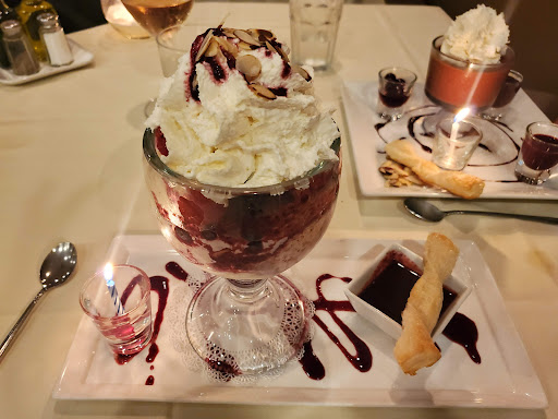 We love this place. The food, the atmosphere, the service. Aline and Cathy are wonderful and always make you feel at home. We had a party for our son and new daughter-in-law here in January. Everyone had a wonderful time and raved about the food and service. The food was not only delicious, but generous in size. From the appetizers to the desserts, you cant pick anything bad. Each dish is cooked to perfection and presented beautifully. And, all this in a quaint and delightful bistro setting.