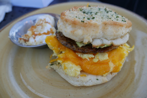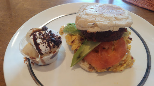 I was really eager to try this place. My husband and I went there for an anniversary brunch. Its a bit different you order your food first and then you said the table. You get your own utensils so its a little bit of Self Serve but they also have waiters who can bring you stuff. Doing around 2 in the afternoon and they were already out of grits, dessert cups, and biscuits. It took over 30 minutes to get our food. And 45 minutes before I actually ate something. This was after waiting in line for about 20 minutes. I ordered the tofu scramble and there was easily an eighth of a cup of tofu in it. Why even have a tofu dish if theres barely any tofu in it? After they remade it, which took another 10 to 15 minutes, the tumeric was overpowering. At that point I was growing tired of sending my food back. And it took a while for someone to come out and address what was going on. When you dont have an assign later or manager on duty its hard to know that something is wrong. When they did finally notice, they gave us meal vouchers. At first, I wasnt going to use meal vouchers because of the unpleasant experience I was having. But one of the cooks came out and after I clean the issue to him he read made me a dish and brought it out in 5 minutes. It was the French toast sandwich which was delicious. So Im going to give them another chance and I will make sure to order that again. And hopefully theyll have more biscuits and grits also. Ill update once I go back.