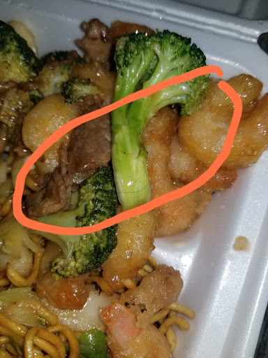 The beef and grilled chicken was raw inside. The orange chicken is still frozen inside after being cooked to serve.......food is never consistent. Depends on the cook!